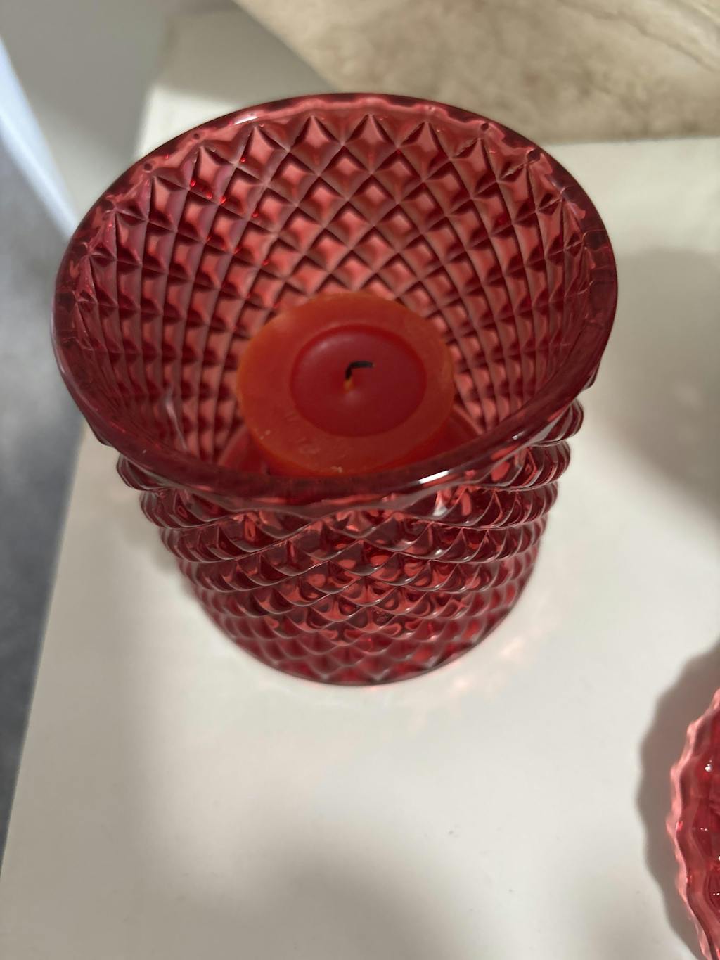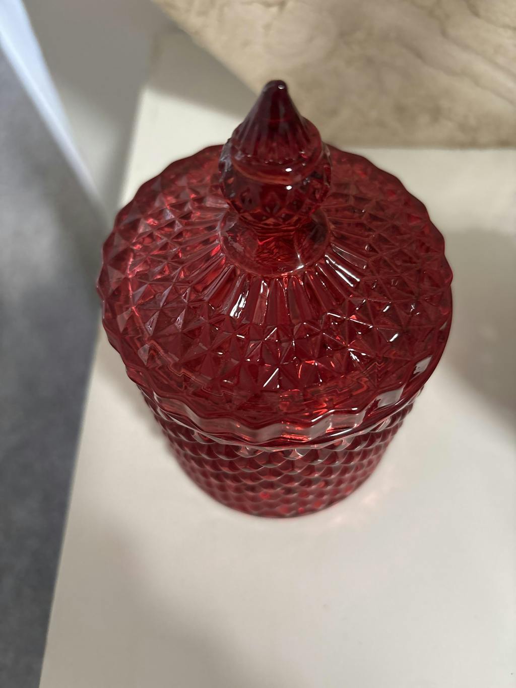 Geo Vintage Cut Glass Candle Jar with Lid - 250mls - Red